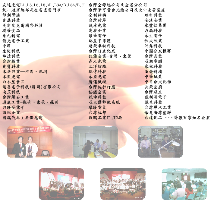 經過多年來不斷地努力,至今已協助過大大小小數百家的知名企業,累積了豐富的輔導經驗,未來也將持續掌握管理趨勢,帶領我們的客戶走在尖端,矢志成為企業管理的最佳夥伴!